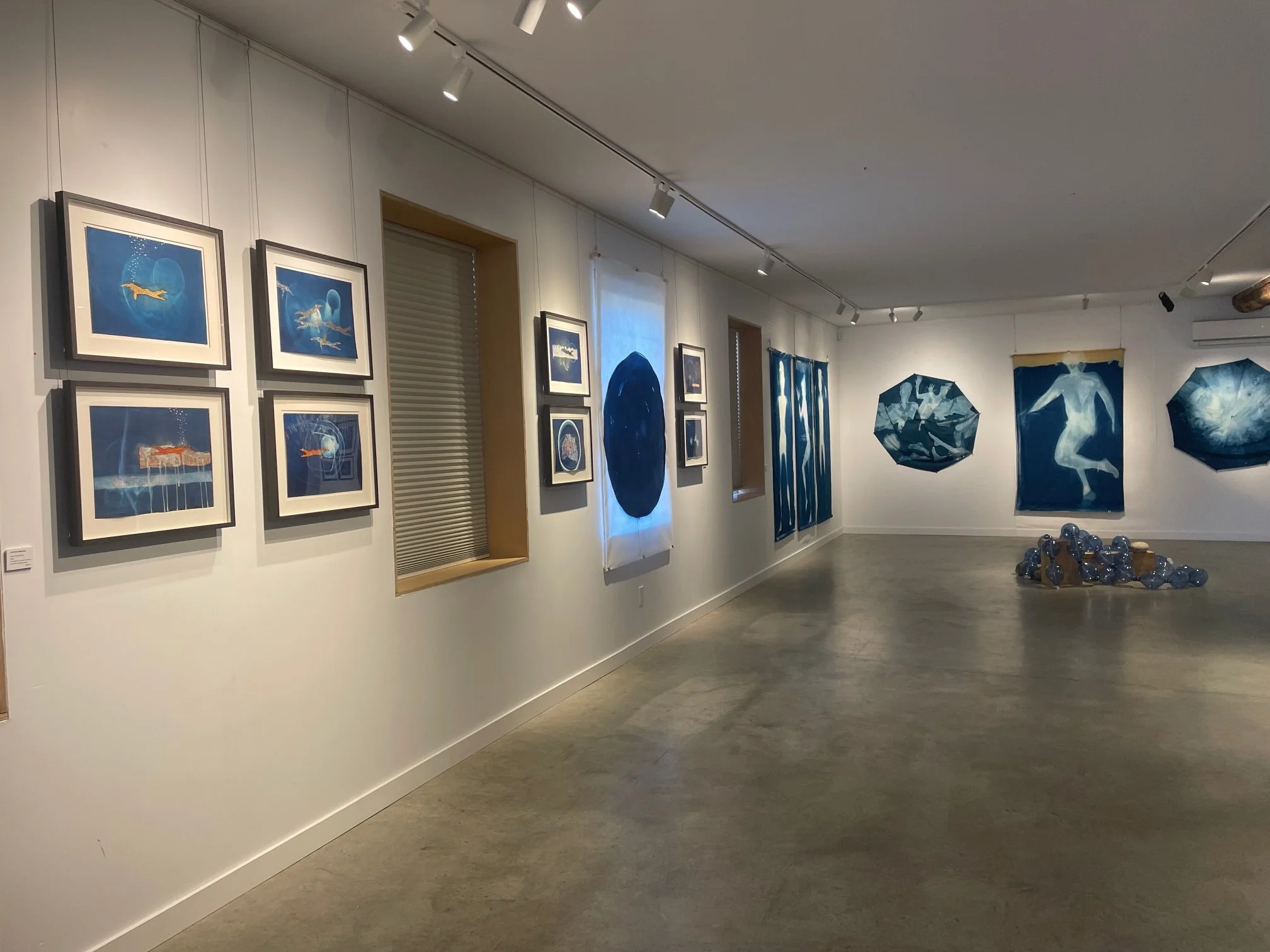 In this exhibition, I present sculptures, digital images, and cyanotypes on fabric and paper, sometimes enhanced with collages and drawings. Several series are featured in this exhibition. These works represent personal states of mind, but everyone can relate to them in different contexts of our lives. When working with light prints (cyanotypes) on fabric or paper, it is important to me that my work remains connected to environmental issues, since this ancient photographic medium works by causing a photosensitive emulsion to react to the sun's ultraviolet rays; the results are imprints of elements placed on different media during exposure. Most of my cyanotypes are made directly under the sun.